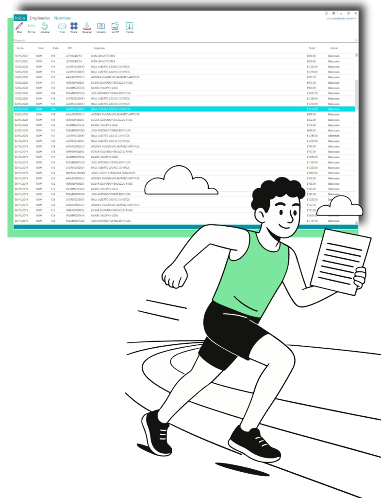 Genera nóminas timbradas ante el SAT, gestiona movimientos y entrega comprobantes sin errores ni preocupaciones.